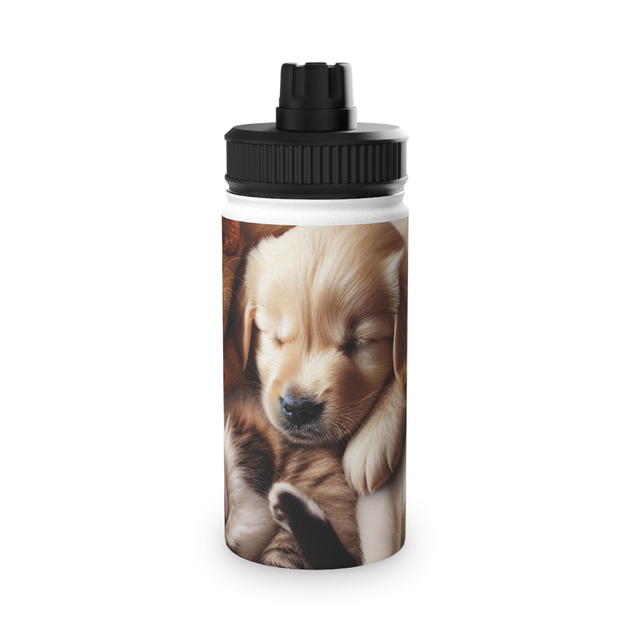 Pet Lovers Stainless Steel Water Bottle - Cute Puppy & Kitten Design | Eco-Friendly Sports Lid