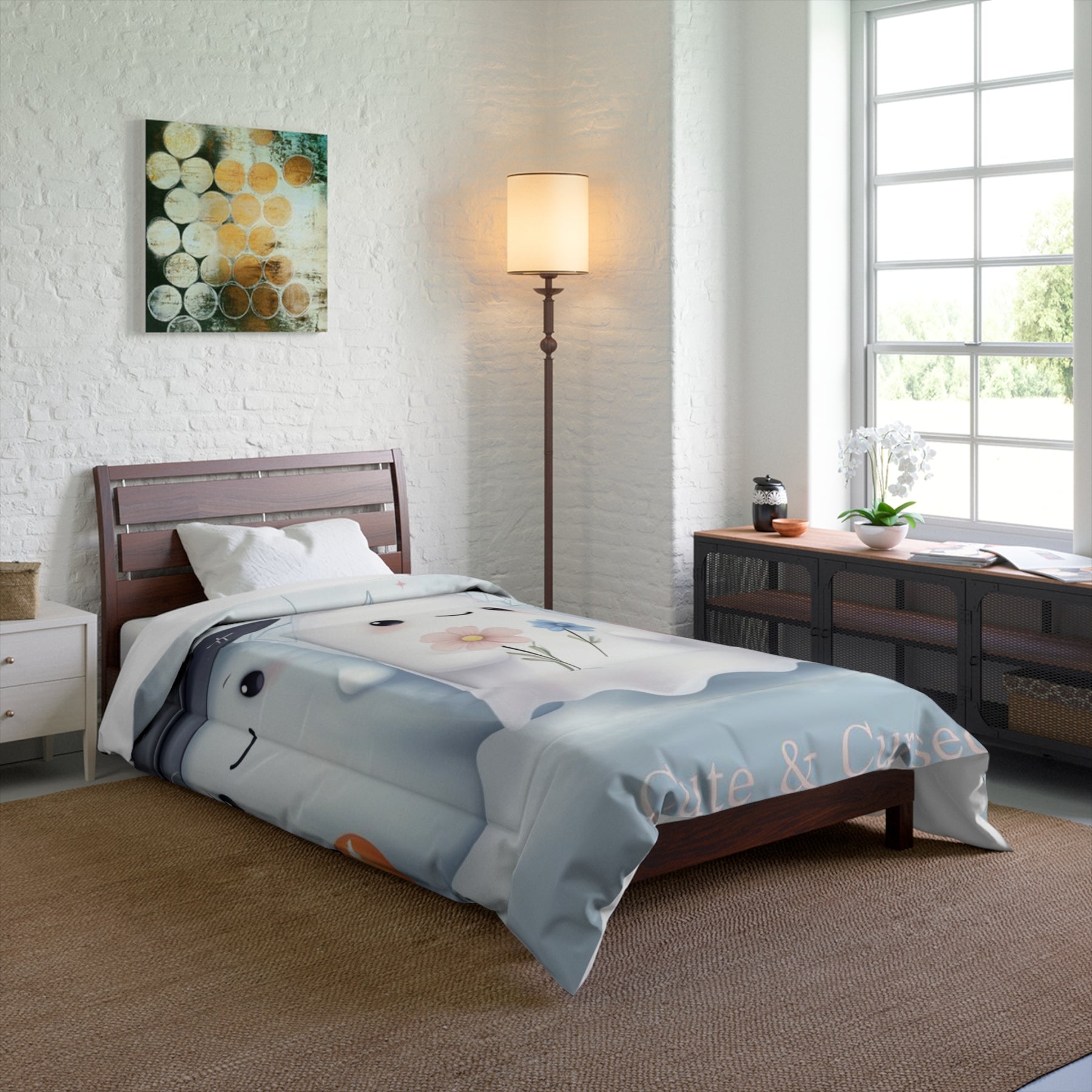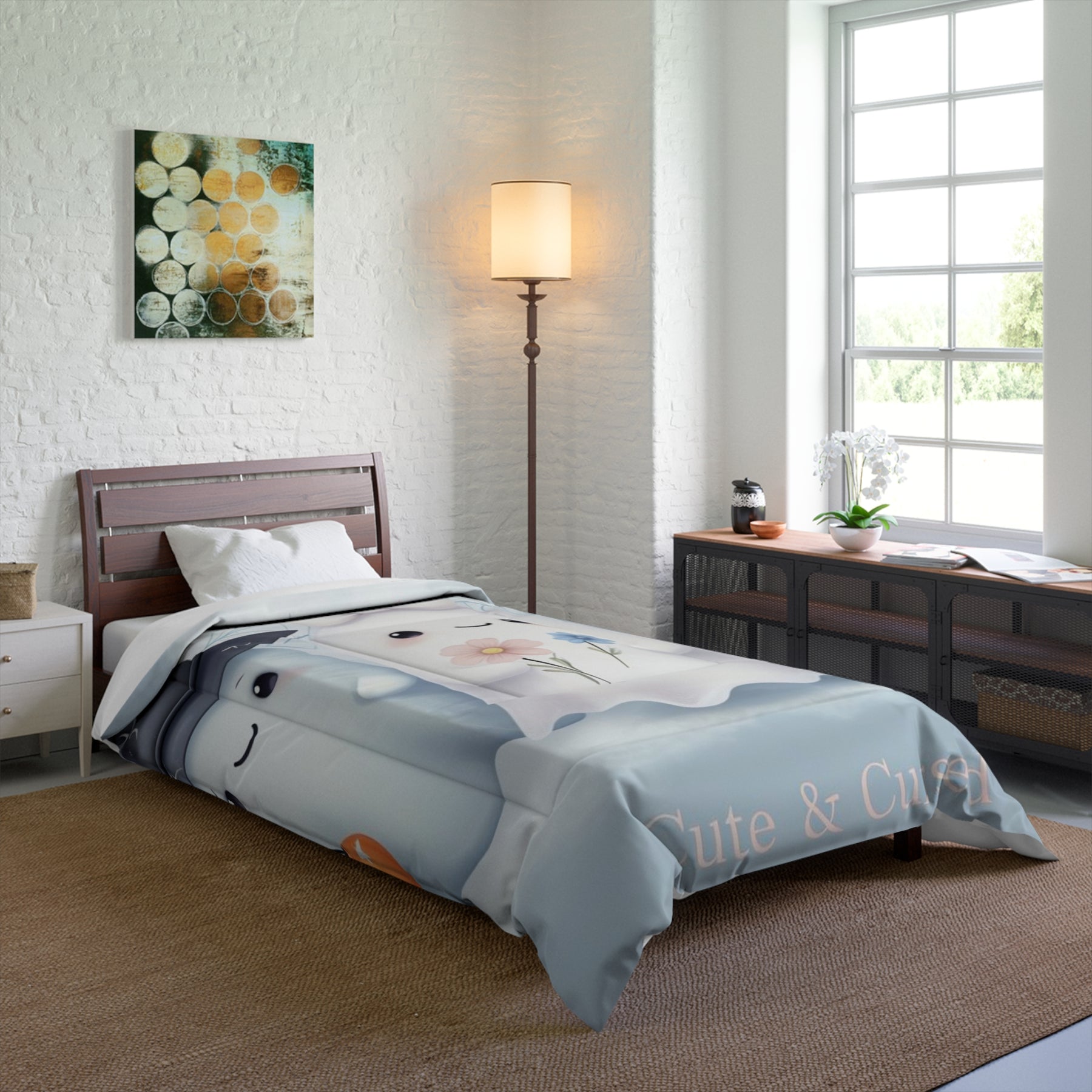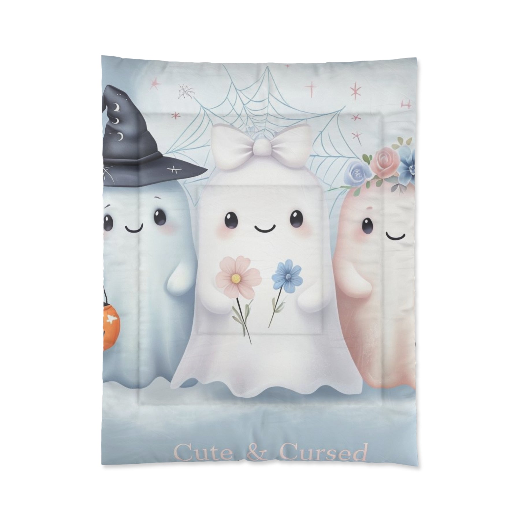 Transform your bedroom into a cozy haven with this delightful comforter. Featuring a playful design that brings charm and whimsy to your space, it's perfect for those who embrace a soft, cheerful vibe. This comforter is not only a stylish statement piece but also a comforting essential for chilly nights. Ideal for children, teens, or anyone who loves to add a touch of fun to their decor, it suits any season. Whether it's for a birthday, Halloween, or just a gift to brighten someone's day, this comforter is sure to spread joy and warmth in any home.